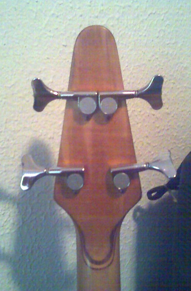 There are a few things about this bass that are unusual.  I could be wrong, but my guess is that the electronics are not original.  The knobs, the layout, and the modified cover plate on the back, suggest this.  The non-brass nut is also unusual.  There are very few fretted Alembics with stock non-brass nuts.  And the tuning machines also do not look original.