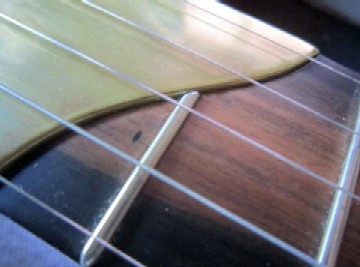 Sidelined fingerboard, with bronze dots.