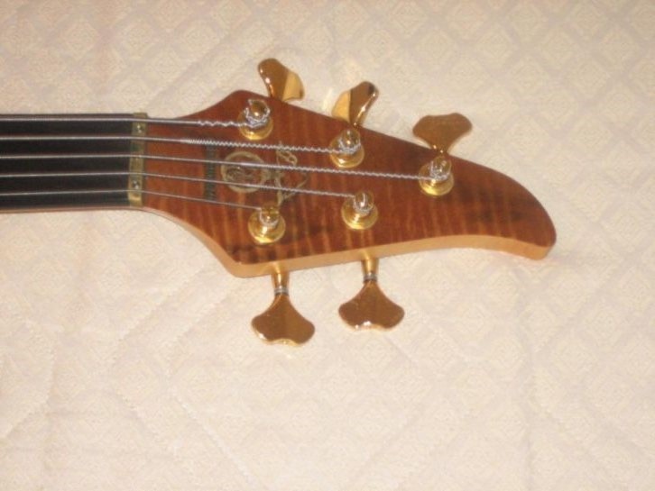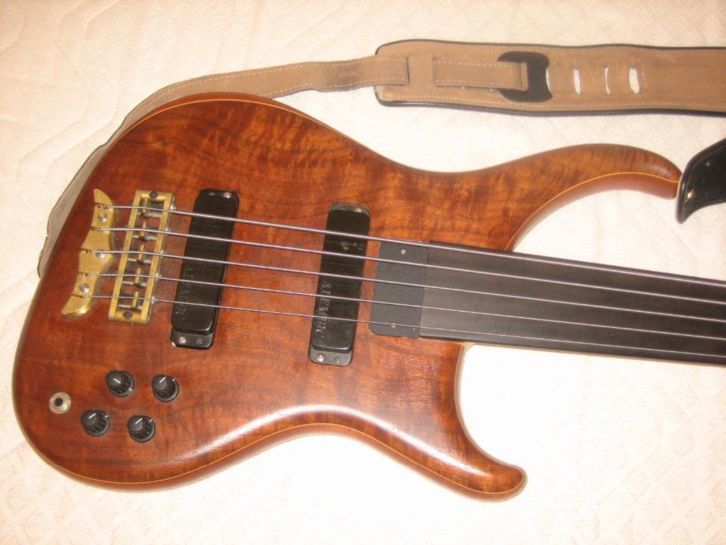 Not long after the Orion I bought a 4 string Brown Bass. That was my go to bass until I had my Series 1 built. In between these I had the fretless built. I purposely went with the Orion set neck and ash body to get more emphasis in the mid-range and the associated mwah. It does a great job of capturing that. I like the combination of controls on the EMW electronics. I find I use the filter and Q switch differently than on my other basses. Instead of being the primary tone control they becomes more of a tone modifier or fine tuner for what I set on the bass and treble controls. Of all my basses the fretless is the one I'm most likely to pick up when I just wish to noodle around.