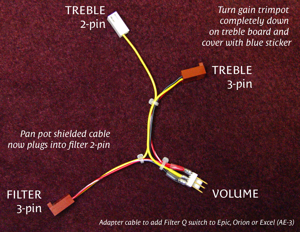The EMW circuit has to either start with an Activator filter or the Activator bass and treble circuit. That means start with Essence or Epic/Orion/Excel and add the other parts. We make a little Y adapter that lets you hook it all together.