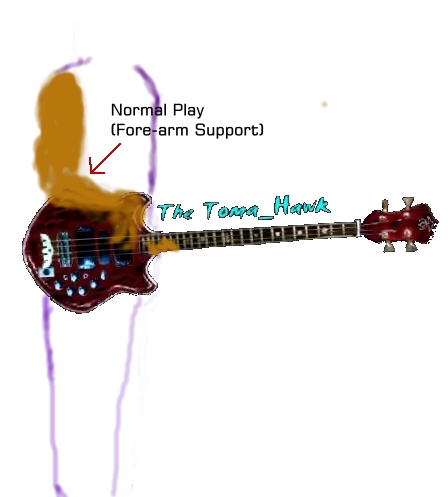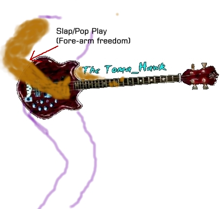 The shape of the Toma_Hawk is the most valid feature for my playing style.  In Normal play, I get the same comfort from my Small Body Series I, where I am resting my forearm on the basses most extended part of the body...   My body is basically in a neutral position, with movements only from my arms, hands and fingers. Thus I am not exerting much energy from other parts of my body like my legs, and back.  I call this: "The Neutral Position" in playing an electric bass.    Again, the Toma_Hawk plays like any Small Body Series bass in Normal Play. (See caption)  In Slap/Pop Play mode, the Toma_Hawk action is distinctly different from my Short Body Series I.  The Toma_Hawk was designed to support the Slap/Pop Play forms of bass playing.  The Toma_Hawk will add greater balance between both Normal Play and Slap/Pop.   When I play in the Slap/Pop mode, (The Attack mode) the Toma_Hawk's wedged back is less restrictive and resistance of my arm movements, and this is what makes this body wonderful form me!   Also, in the Slap/Pop Play mode, I am exerting many more muscles and I am getting a great workout too, and I need freedom to move! (This is where the bass becomes my percussion instrument, and I get a true jazz-exercise "Jazzercise" ) for the groove!     To some it all up:   I definitively feel this shape supports both styles more equally to support my cultural musical style.  "The Toma_Hawk is like having (2) Alembic Basses in (1) cool design!"  Peace,  Hal-