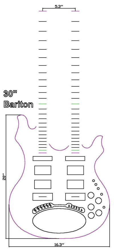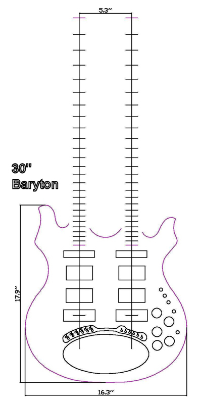 Haha, that thing looks too cool! Would it really be 30 scale like a bass/baritone? Is that what the baryton name refers to? If I could redisign my doubleneck, I would make the fretless bass be 30 scale and the baritone a bit shorter.
