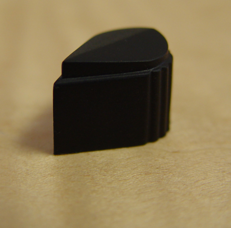 the pointer knob has a height of 1,2cms, a lenght from round end to point of 1,8cms and a diameter where the round part goes into the angle of 1,2cms.