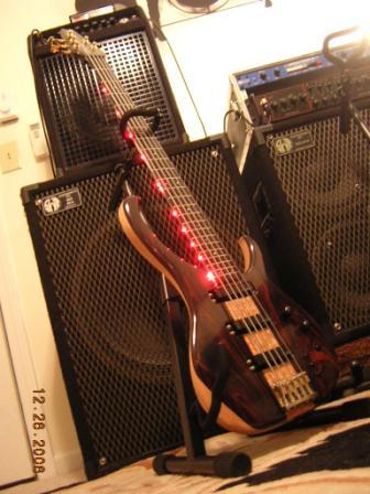 Toby is correct, however, my Modulus has an unconventional setup: 3 pickups with 3 on/off switches, a vol and a filter with a 2 position Q switch. I believe it is one of my best sounding basses! Here she is 3rd from left: