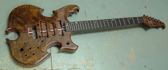 I'll ask Mica to take some shots. The guitar is actually finished, it's a few years old; the electronics are not in it, so it looks like a work in progress, but it has them, they are just being serviced.