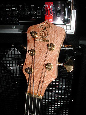 I think a headless Alembic would require a reinterpretation of the classic Alembics (small standard, standard point, standard omega) or the newer interpretations of those (balance k point and omega, and lil'darling) by Susan. She would be best able to come up with a design that embraced being headless and was very properly Alembic. Actually, I'm sure the Standard or K Omega could be reshaped quite nicely to accept a tuner/tailpiece at the butt end. As to the logo, have it inlayed on the bass somewhere.