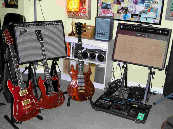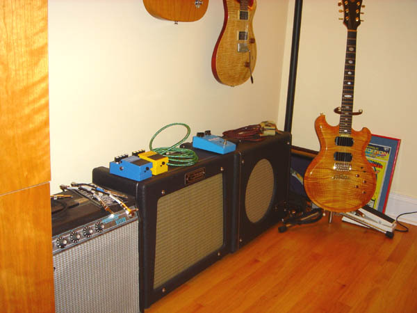 Got tired of lugging the old Marshall half stack each time me and the guys got together and finally got a combo amp. I would have loved a little 1x12 but my co-guitarist still wants to lug his head and 4x12 cab, so I needed to be able to move a bit more air than a tiny amp would allow. The Marshall will remain a permanent fixture in my den. Since I do all of my modulation through my POD XT Live, I needed an amp with plenty of clean headroom. Also, I didn't want to shell out a lot of cash. Wound up getting a Fender Hot Rod Deville. 60 watts, all tube, 4x10 platform. Sticker was $799 at Guitar Center, but I got a discount from a guy I've done a fair bit of business with there. For the money, I don't think you can beat it. I give it two thumbs up!!!