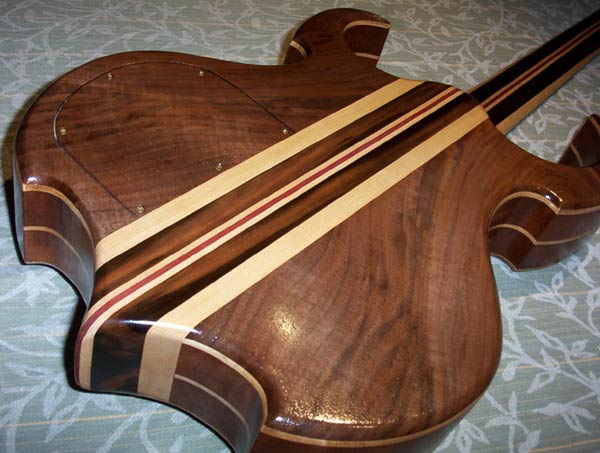 No this was not an Alembic.  This is a neck I made for a solid/hollow bass.  But the idea behind it is just about exactly what you are talking about except that this is a flat top bass.