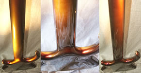 Problem with sheer black (or any sheer color) is that it first has to overcome the color of the wood. Since usually we paint colors over Maple, you first have to overcome the yellow cast of the Maple. Hardest of all is the black. Sometimes it looks a little on the green side (when the color is thinner) others, a touch more on the purple (with a thicker amount of black tinted paint). In order to get it so it appears more black - well, it needs more black paint, and that obscures the grain of the wood.