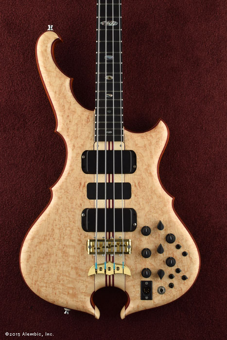 I must confess, the pictures of the beautiful Bird's Eye Maple on this bass inspired me to recently pull the trigger on yet another one for my own personal use - a 5-string version of my Maple-topped, Vermilion bodied Refinement bass ( http://club.alembicguitars.com/Images/393/100949.html?1302566395 ), with the only other significant difference being Bird's Eye Maple instead of Quilted Maple for the top.