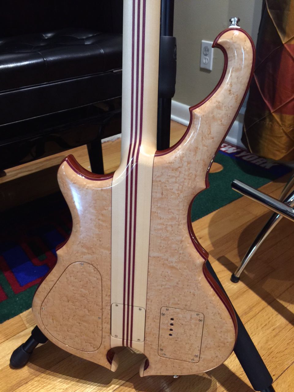 Such a great looking bass.  I wasn't a huge fan of this body shape when I've seen it previously with dark wood tops.  I'm loving it with the birdseye maple!!