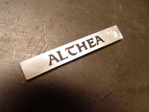 James has the scroll inlays in the fingerboard and also the nameplate. Here's the plate on its own: