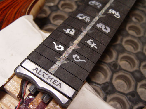 And inlaid in the fingerboard:
