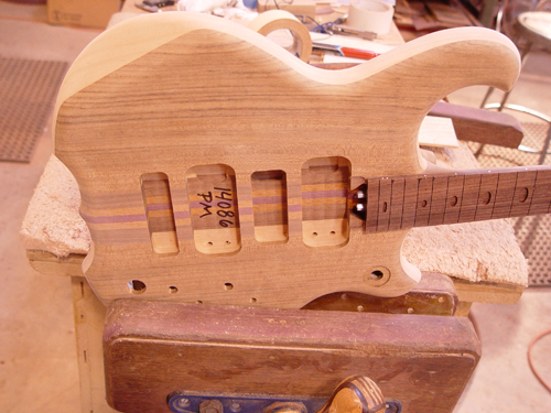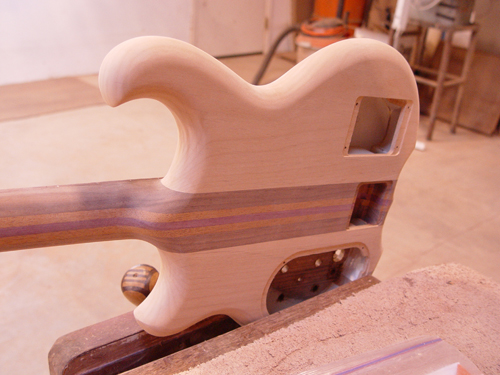 Adam likes to test us! The neck in the above pictures is for a different bass. Getting carved: