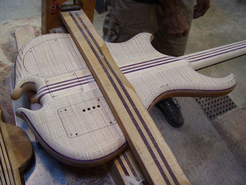 Hi Alain:  I really like Mica's pix of the rough part of the shaping process.  Obviously it's easier to get pictures of the stopping points in the building process, where the rough edges have been removed until the next step.  That maple really looks exceptional.  I'm looking forward to seeing your bass get built.  You must be thrilled!