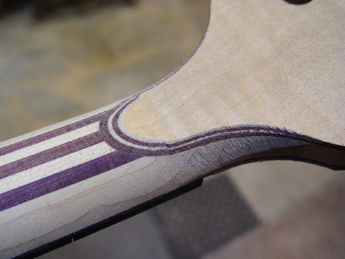 Flame Maple is amazing - especially if it looks this nice in such a raw state. Don't mind the little burn marks around the edge, these will all be sanded away before finishing.