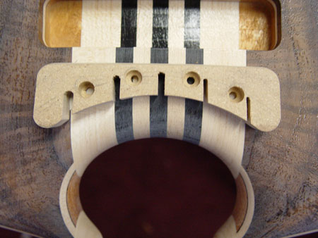 Need to fit a tailpiece on this new design. With the extra long scale and the Omega cut, it does limit the options. Here's two ideas:
