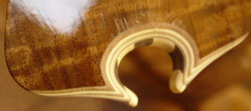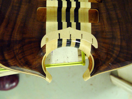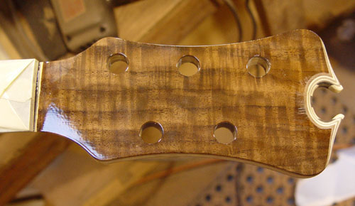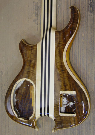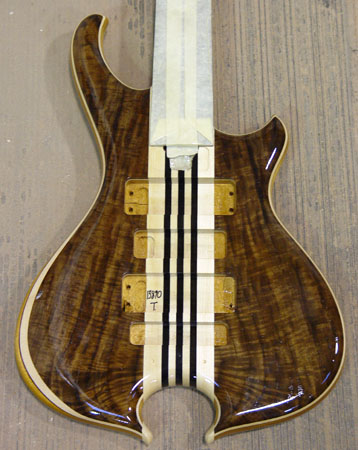 The bass is looking like a real beauty.  Mica's previous shot illustrates just how wonderful the basket-weavy, flamey walnut and the ebony neck lams will look with that gold hardware.  Nice job.