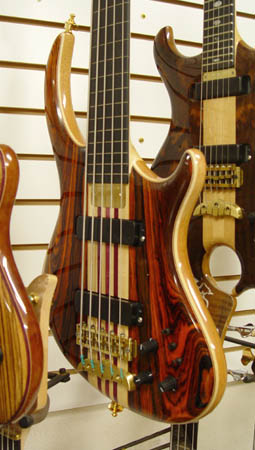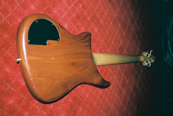 This beautiful piece of coco bolo appears to be melting.  I also love the contrast between the darker and lighter sections of the wood.  A very attractive bass overall.  Congratulations Graeme.