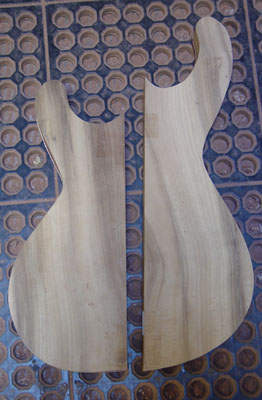 The neck in the picture sadly blew up when we ran it through the shaper. Very small fractures deep in the wood appeared and they weren't too happy when they hit the shaper. We've never seen anything like it, I saved you a piece of this neck, Nik. Chip's get the new neck underway, but it's not in the presses yet.