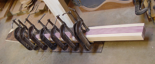 Tony finished carving your bass as I left Alembic today. Here's a shot from Monday I think of the fingerboard getting glued on: