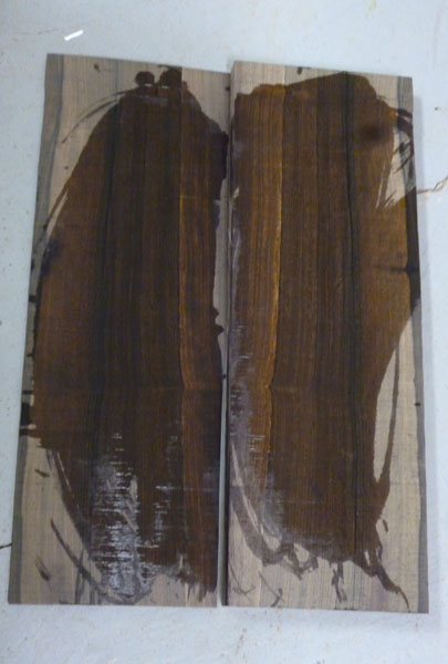 See how much darker with the acetone? Want me to check if the black Gabon Ebony we have is wide enough for your bass? I think it might be too narrow, but it doesn't get much darker than Gabon.