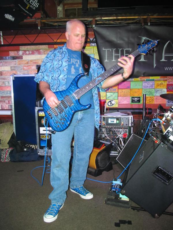 It's been really hard to capture the exact color of this bass in pictures, but the ones my wife took at my gig Friday night are the "True Blue" of the bass. I also bought an Ampeg BA112 to run in stereo & I now have the sound I have been looking for! I run my neck & bridge pickup through the Fender Rumble 350 in mono & my bridge pickup through the Ampeg to enhance the mids & highs. The Ampeg is only 50 watts so it is not adequate to run full stereo & compete with the 350 watt Rumble, but thankfully Ron, in his infinite wisdom built the DS-5R where the treble jack is still hot even in mono mode.   On another note, I have worn red hi top Converse "Chuck Taylor" shoes at every gig since 1985, but to honor my new Europa I switched to blue ones!