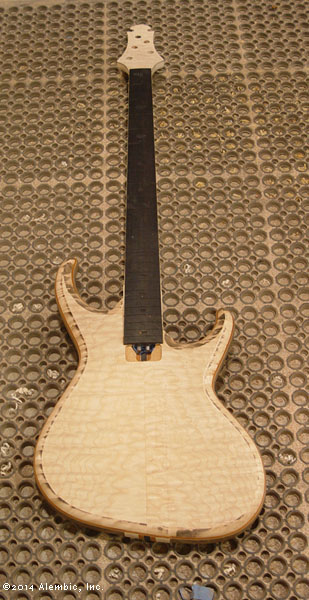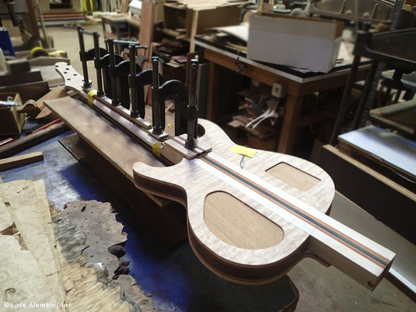 No pictures of the top getting glued on, it's really not a photogenic process. Fingerboard is gluing now: