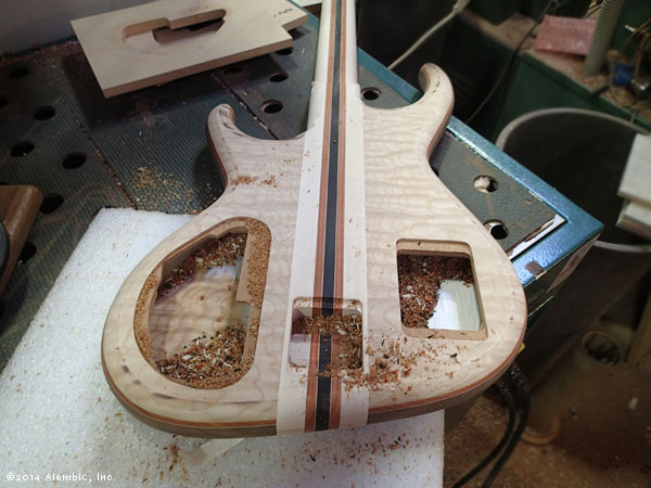 I got to see my Europa today! Words can't describe how AMAZING it looks even at this stage, & pictures don't begin to do it justice, but here's a few anyways! Mica had them finish carving the neck & body & put a sealer coat on it so I could see the figuring in the wood & even with just one coat of sealer that wasn't sanded or glossy, the 3D quilting was incredible! I can't wait to see this with the final high gloss finish! Thank you Mica, Susan, & all the workers who took time out of their day to talk to me & show me their magic!! This is going to be a REALLY special bass!!
