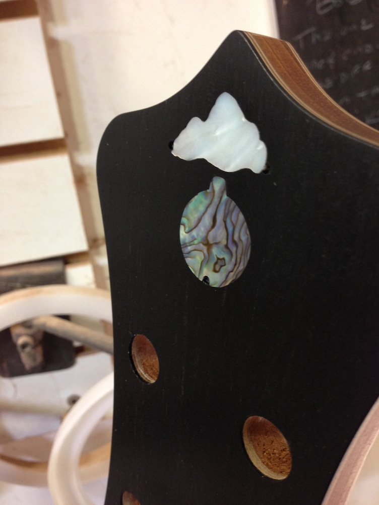 I've wanted an inlaid logo with shell on ebony ever since I first laid eyes on one, so this is a long held dream coming to fruition.