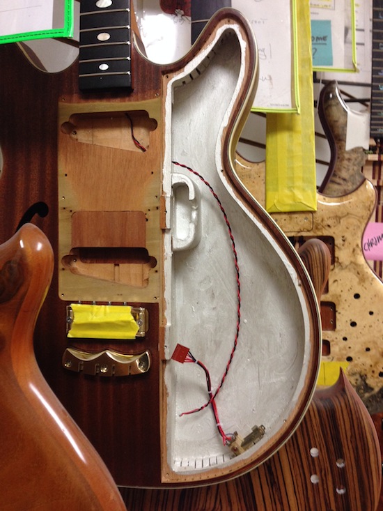 Hell yes. Loving this and can't wait to see it all put together. Really like that tailpiece choice. Reflective of the Alembic bird shape tailpiece, yet a definite nod towards to old school mustache bridges. Really, really nice.
