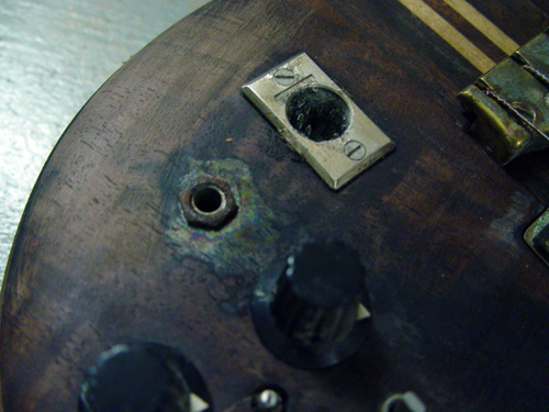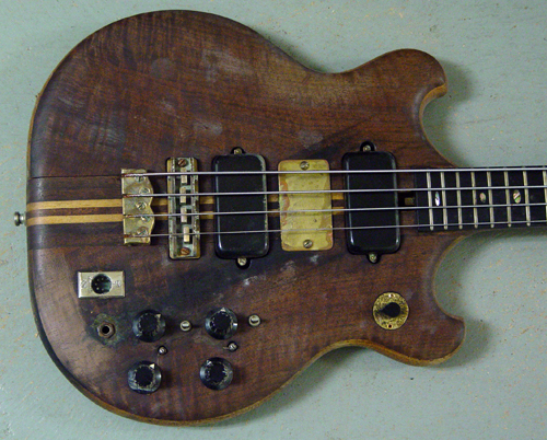 I saw you bass today while visiting at Alembic.  What a trip!  I thought it came through surprisingly well, considering the extended bath.  If it were mine, I'd probably go the hurricane tribute route.  It sort of reminds me of a number of years ago when I saw an ad for Mesa Boogie that depicted (I believe it was) Mac Davis' amp that survived the MGM Grand fire in Las Vegas, looked like hell, but still worked.  Even with all the damage, it is still a very cool looking bass.  I love the old ones.