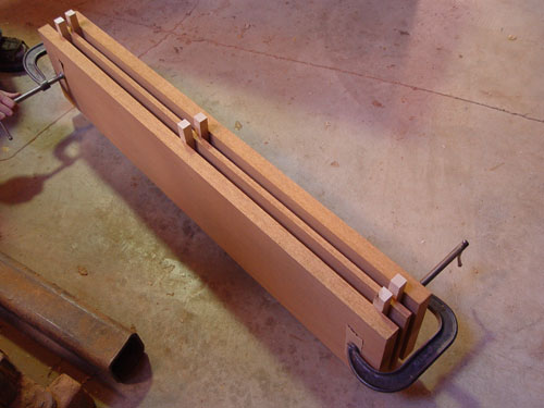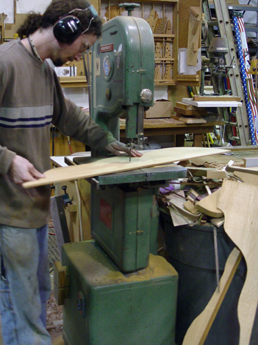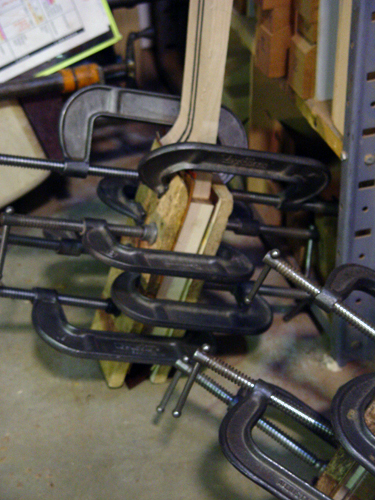 Okay, Chip has pulled out the pieces and is prepping the clamps for getting this big boy glued up. These are the Mahogany body parts: