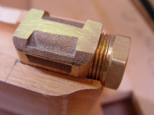 It's the leg of a monopod actually, and it's something I discussed with Austin before. The first type of monopod didn't work out. Well, it's works great as a monopod, but didn't make a great Classico support since it wanted to rattle something fierce. We tried brass fitting and a completely removable peg in our test Classico mockup: