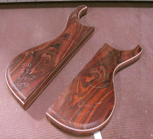 Thats a seriously beautiful piece of Coco Bola you have on that bass. If the headstock is the standard Europa or Elan style then that grain pattern will match it gracefully.