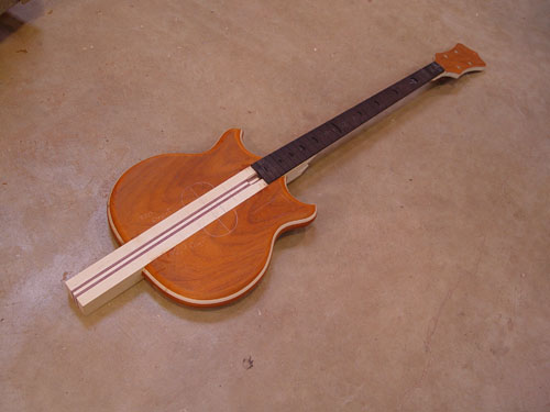 Here's a few images I collected of your bass under construction.   Body halves on the shelf awaiting other parts: