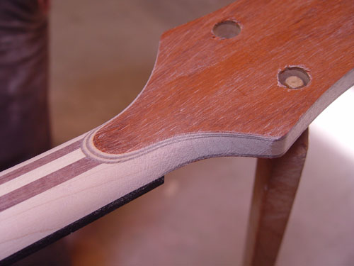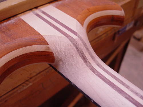 Side of body with a little more sanding done to show those fantastic thick accent laminates: