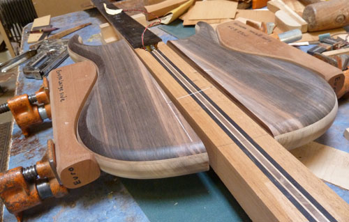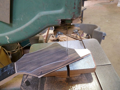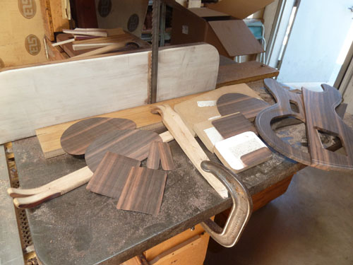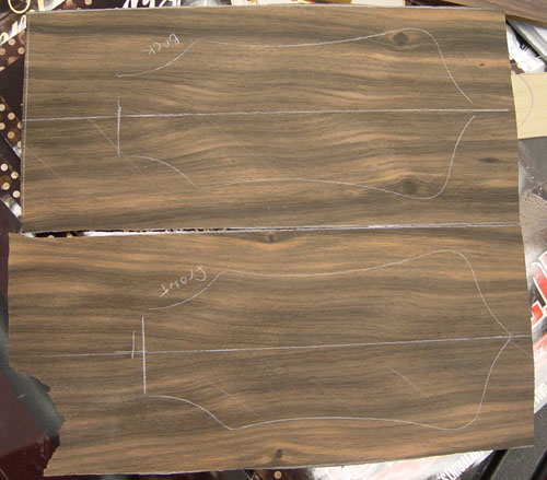 Since we were going with a bookmatched front, we figured we try out a bookmatch back for your peghead. We've done it a few times before, but it's a fairly rare sight around here.
