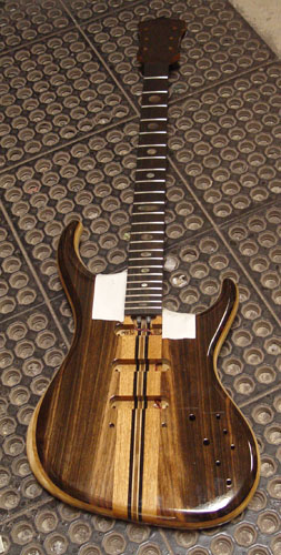 That means we are mostly through the finishing process (yay!). Looking sharp with those black mother of pearl oval inlays too.