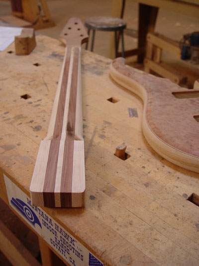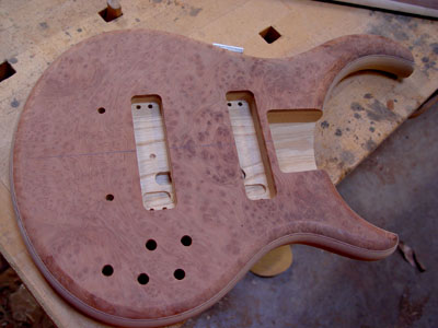 Oh yeah!!!!  I can't wait.  I think the purpleheart will also look more defined when the paint hits it as well, Mica.  I even have a guitar hanger ready and waiting for our new baby: