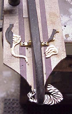 There's enough finish on it to get the inlay started.   Check out the cool peghead inlay: