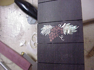 And finally the start of the cute little cluster of grapes for the 24th fret: