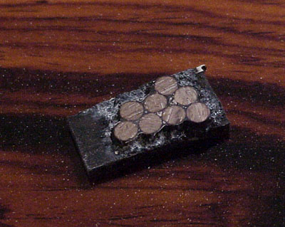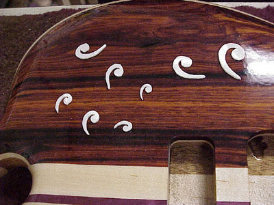 Jon started the inlays for your bass. Here's the 12th fret installed: