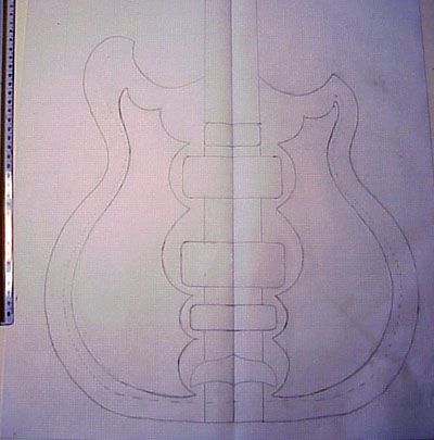 My only concern with the sketch was that the walnut did not come close enough to the pickups and the bridge (rear of bass).