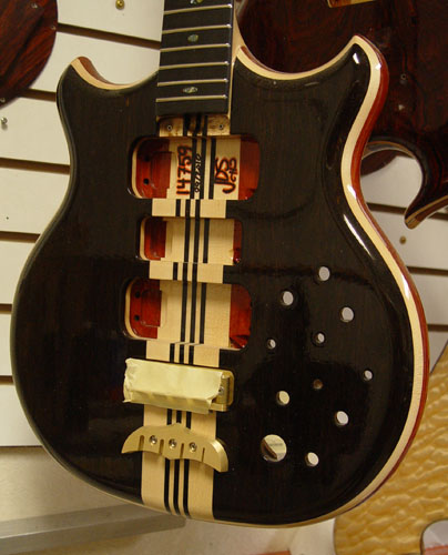 The paper one probably has the tracing of the template, which has the pickups positioned like the Red Tiger bass. The template is made specifically for your bass, so that's closer to what is actually drilled. We don't reference off the pickups, so their positions do not matter for drilling. Both images look pretty close from the edge of the body.