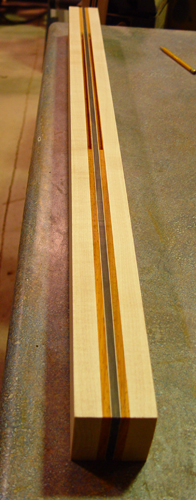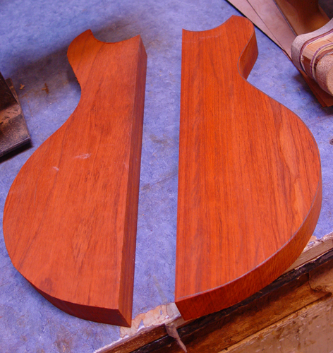 It's actually for a hybrid/custom project, sampling from a Skylark, Darling, and Further as well as previous Alembic custom instruments: Skylarkish body shape(Vermilion core Flame Maple top with Vermilion/Maple accent lam), body and peghead omega, neck volute, custom electronics, nickel plated hardware, Bird of Prey tailpiece on Ebony, continuous wood backplates and t-rod cover, etc...