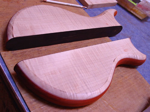 The up/down nature of the flame figure shouuld still read with the finish applied. I really like how this guitar is turning out.