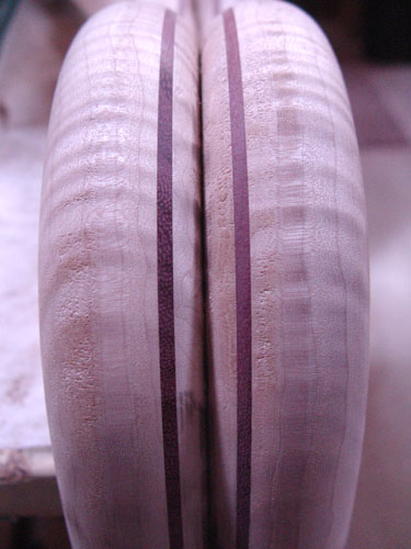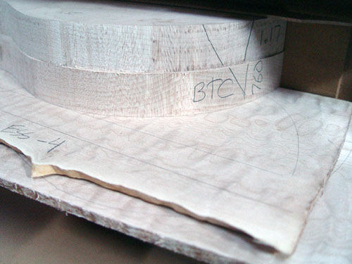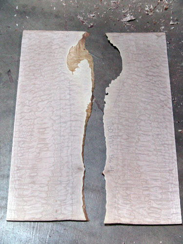 It's not getting glued up yet, since there's much more prep work to doing the bookmatch to center. However, here's some of the goings on: