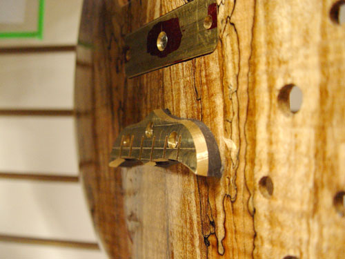 James is presetting for the plated hardware. Here's the tailpiece, ready to get buffed out: