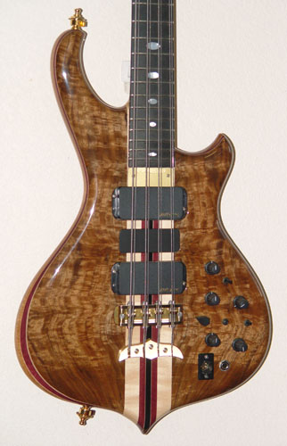 2023 Mark King 5 String, Buckeye Burl via Will Gunn Guitars. With added 5-pin jack